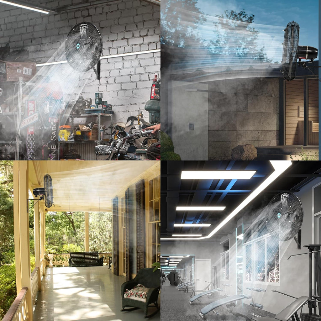 - Adjustable Air Direction – Oscillation and Tilt Features-Covers large areas with 75° side-to-side oscillation and a 25° vertical tilt for precise airflow direction. The fan head can also be fixed in place when needed. Mounting hardware included for secure installation on concrete or metal surfaces (not for wood).